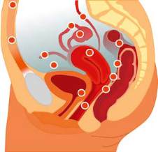 die Endometriose im unteren Bauchraum auf. Die Schleimhaut-